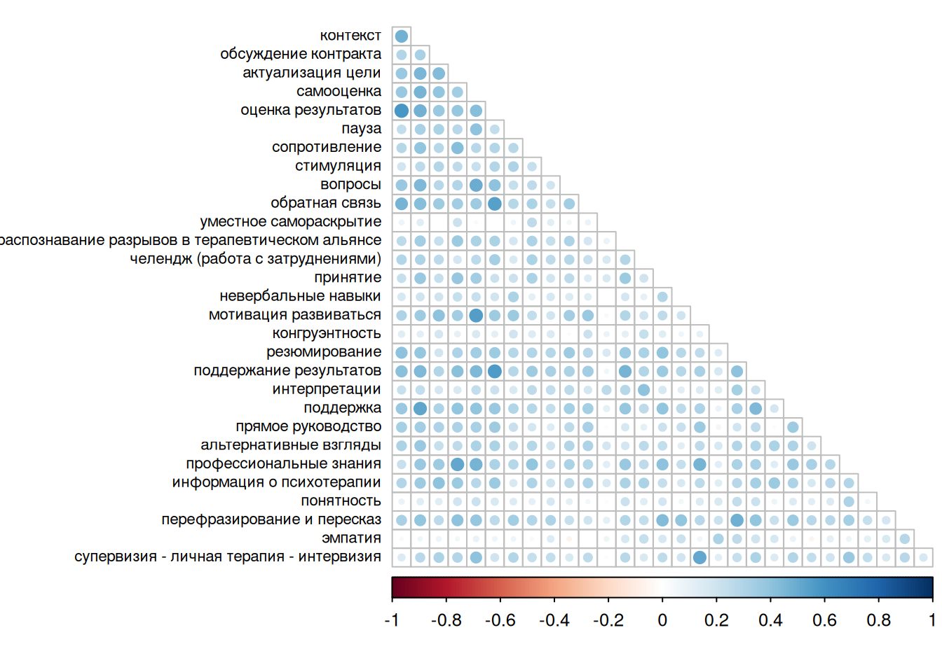 | резюмирование сессии и результатов терапии c клиентом | 27 | 0.587 | 0.088 |